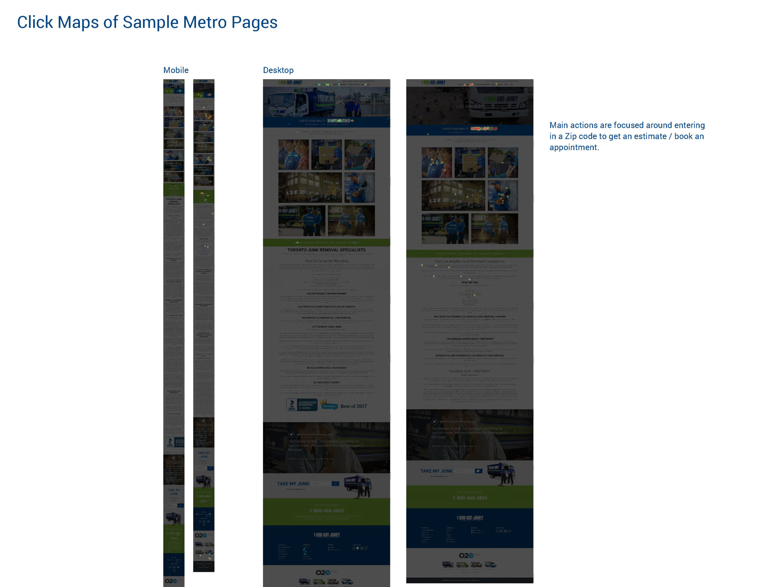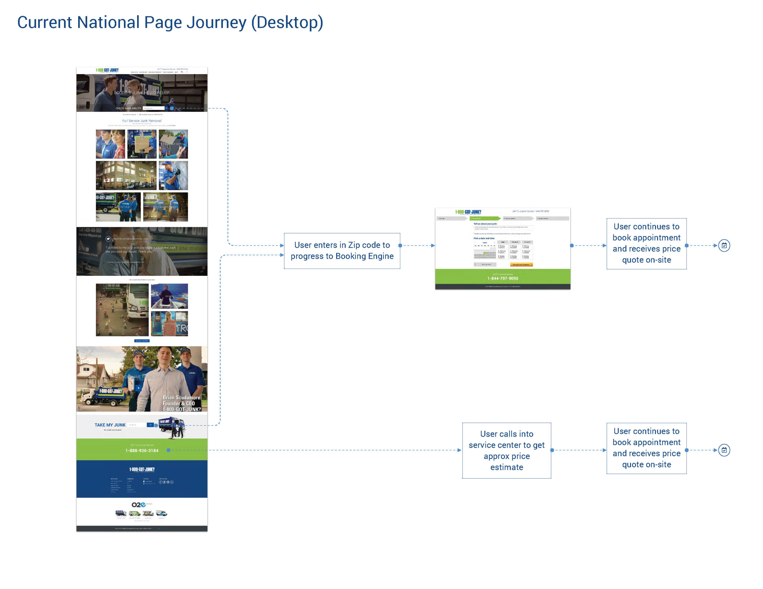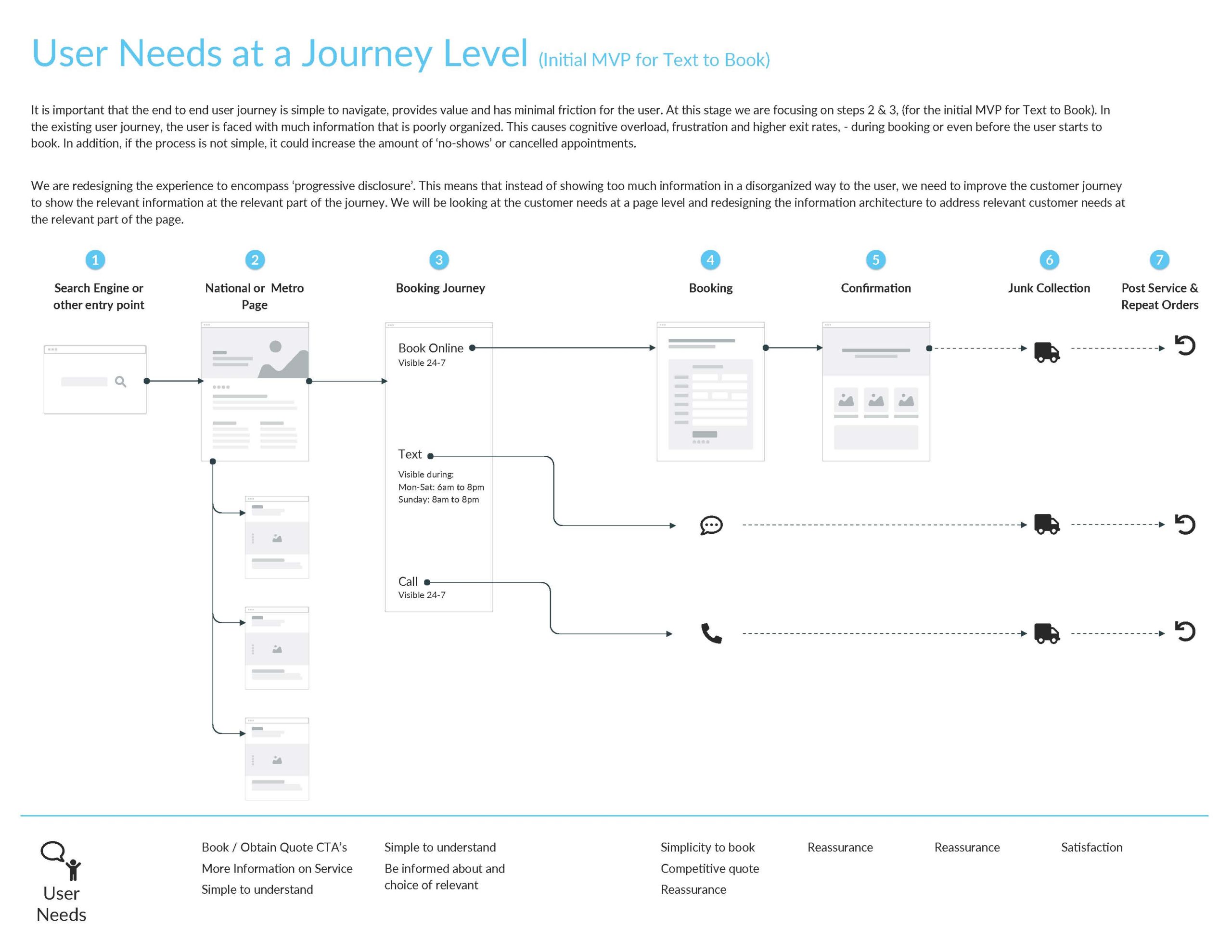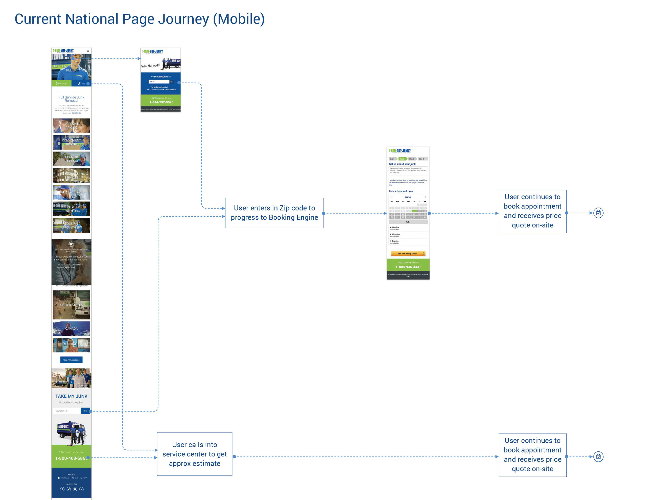 O2E Brands / 1800-Got-Junk was looking to improve its conversion through automated methods and reduce it’s call center costs, whilst still growing overall conversion and NPS. The company purchased Silicon Valley startup which provided junk removal quotes and booking through a mobile text booking system. They had run some pilot designs with some of their franchises which were poorly designed. Having worked with Stephen on some other projects, they brought him in run a user-centered design process to introduce a text-based booking system MVP into their online responsive website.