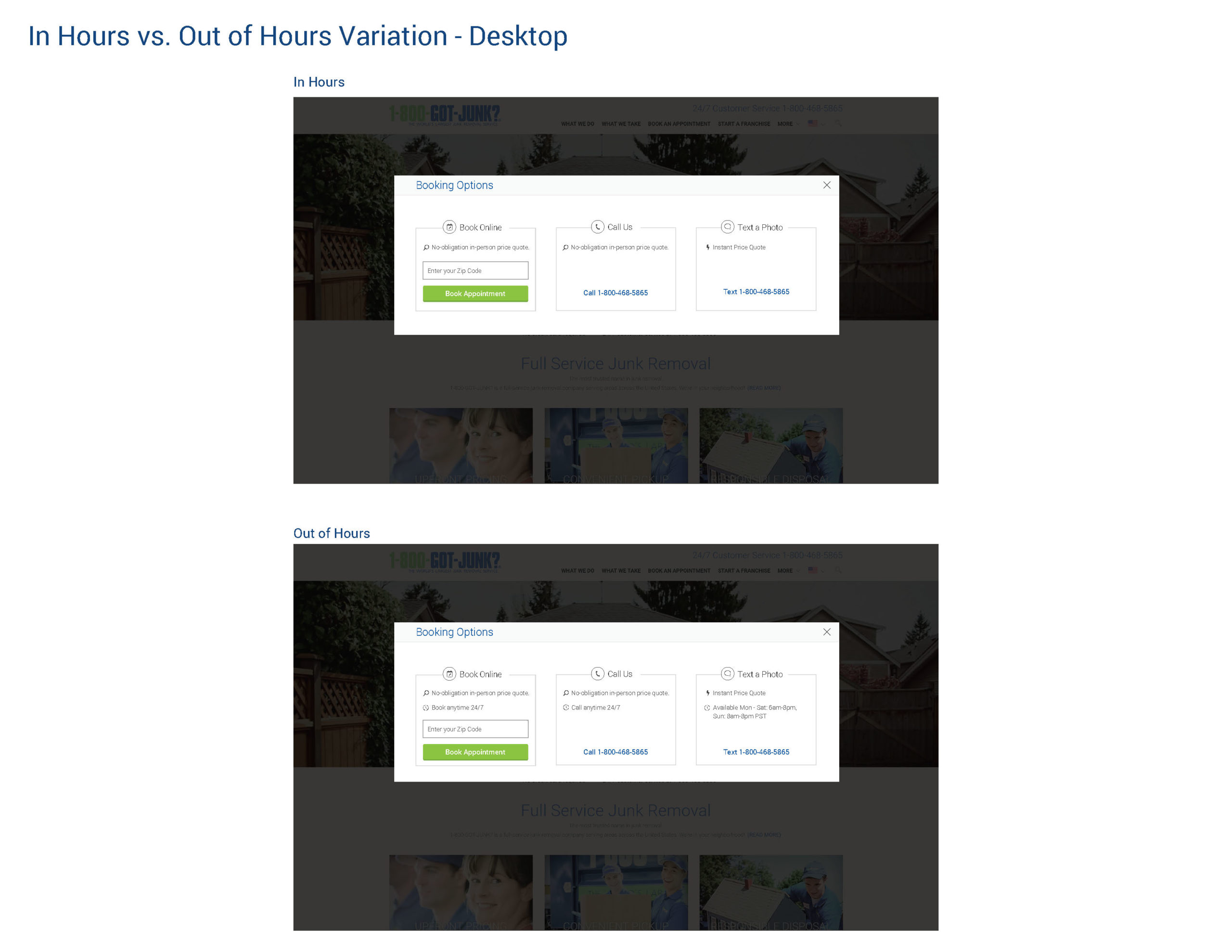 Introducing a new booking channel for O2E Brands 1800-Got-Junk Responsive Website